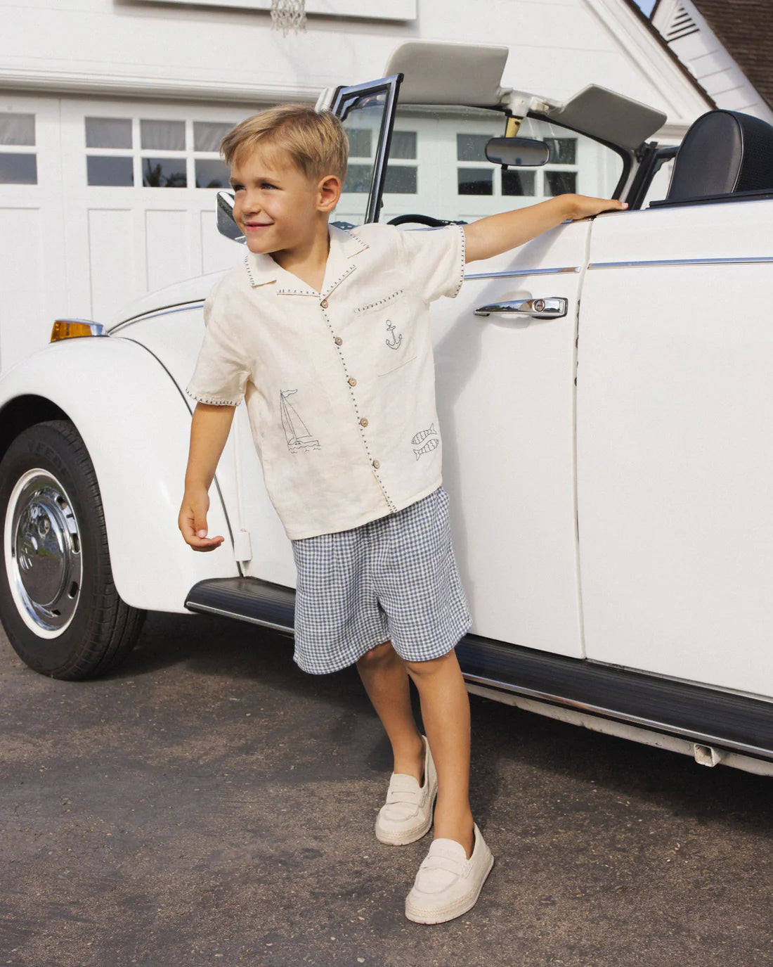 This button up boys shirt features a lapel collar and chest pocket. Enjoy seaside days in this cool look.