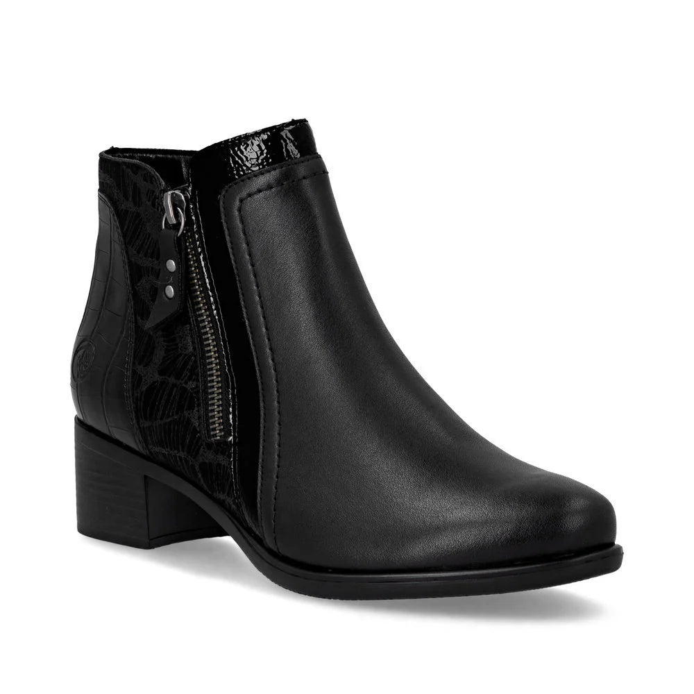 Classically feminine and chic! With these black Remonte ankle boots, coolest style and maximum comfort are guaranteed at every step of the way. The zipper makes the shoe easy to put on and take off. The removable insole, flexible and grippy sole with block heel balances even hard ground.