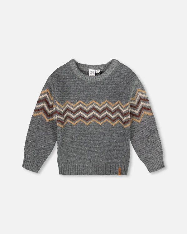 DEUX PAR DEUX- KIDS' DARK HEATHER GRAY KNIT SWEATER
