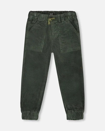 DEUX PAR DEUX- KIDS' FOREST GREEN STRETCH CORDUROY JOGGER PANT