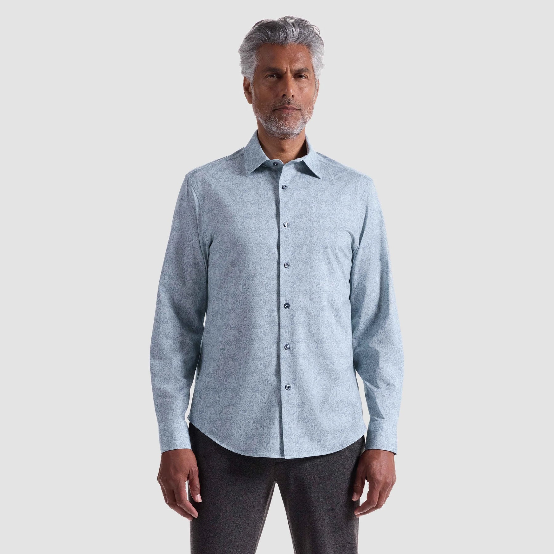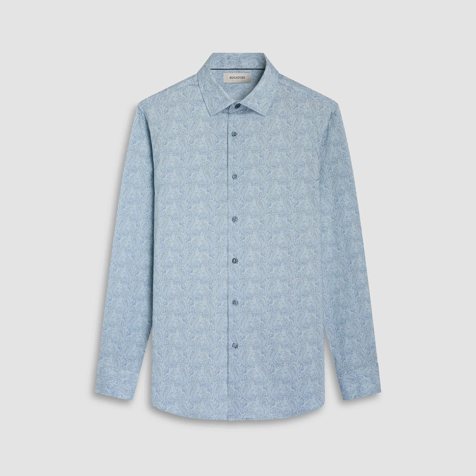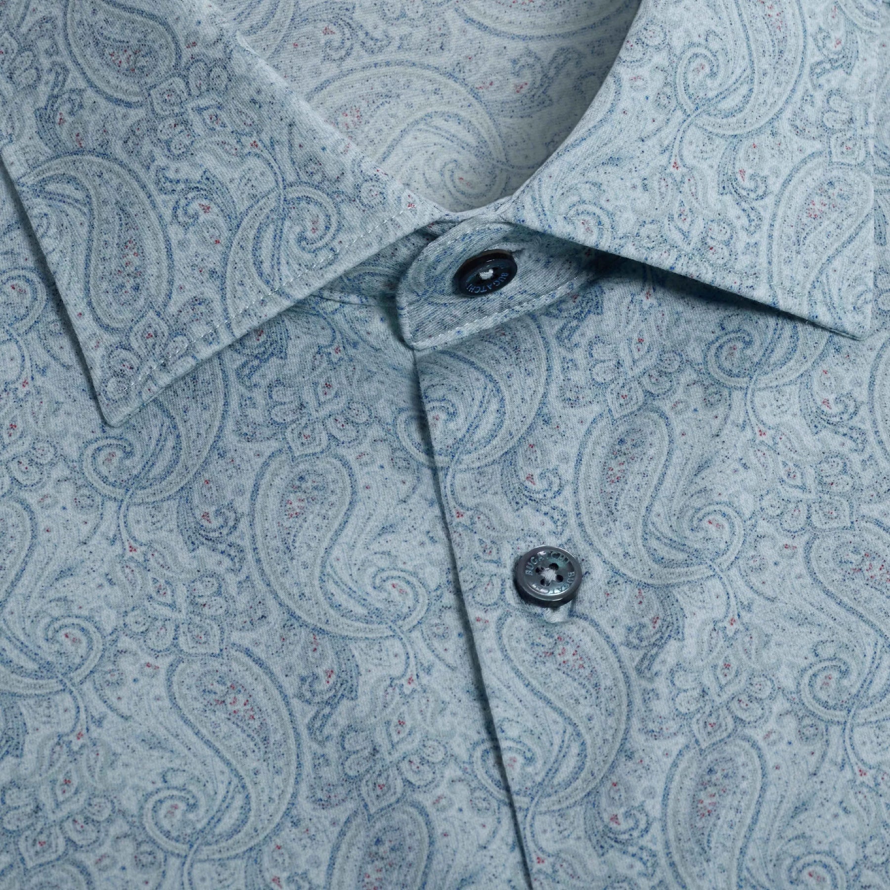 The James OoohCotton® long-sleeved shirt in paisley print features a point collar, mother-of-pearl buttons, and a curved hem for a sleek tucked or untucked look. The notched cuffs are adjustable to allow for customized fit and also convertible to accommodate cufflinks. OoohCotton® is a performance, double-mercerized, wrinkle-resistant, breathable, and easy-care cotton blend with 8-way stretch, quick-dry, and thermal comfort properties.