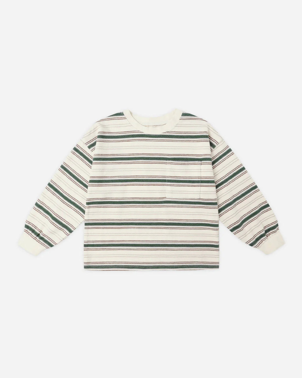 Relaxed-fit long sleeve tee with ribbed neck and cuffs, and a front chest pocket — a comfortable go-to for the season.