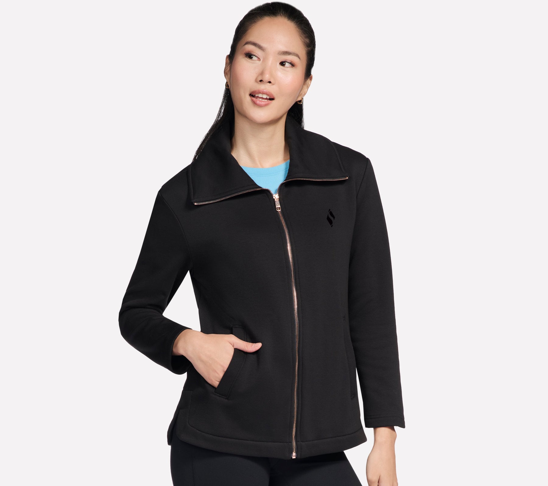 Zip into instant warmth and sophisticated coziness wearing Skechers GO Snuggle™ Tunic Full Zip Jacket. This long-sleeve outerwear piece is made from our double knit GO Snuggle™ fleece and features a broad fold over collar, exposed zipper, and front welt hand pockets.
