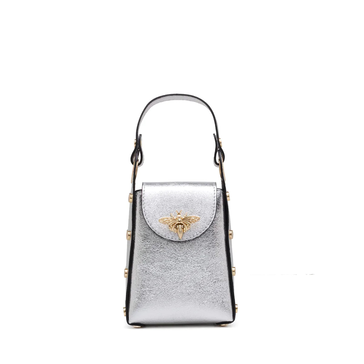 "Bee Stylish with our Bee Bag Collection! This double handle bag has a removable strap that allows you to carry it comfortably on your shoulder or as a strap-on bag. This bag is perfect for every day use, to always have your belongings at hand as it has perfect room for your phone,wallet and keys. It's durable and easy to clean. Genuine leather and handmade in Italy."