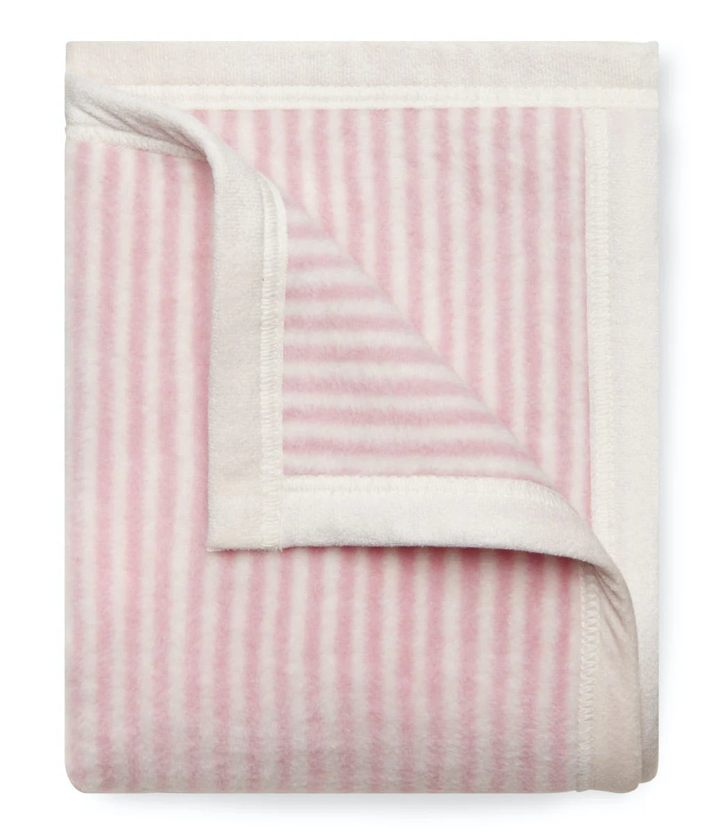 This classic baby blanket meets a Chappy-style twist, in a soft mix of pretty-in-pink stripes. Add a monogram for a one-of-a-kind gift.