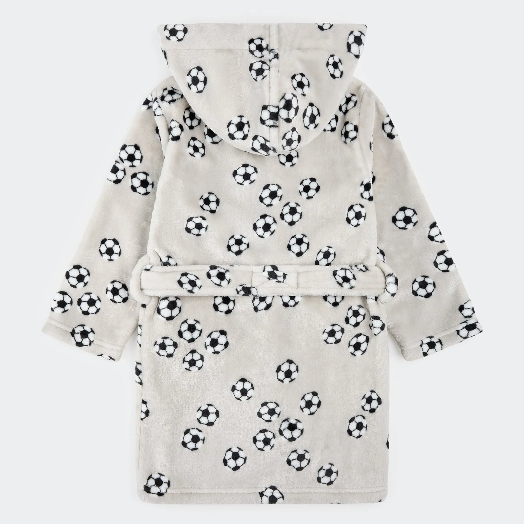 For little ones who dream of goals and big wins, this soccer-print robe keeps them cozy and relaxed – whether unwinding after a big game or prepping for the day on chilly mornings. Designed with a loose hood, deep pockets, and soft tie closure, it’s perfect for wrapping him up after his post-practice bath or scoring comfort points before bed.
