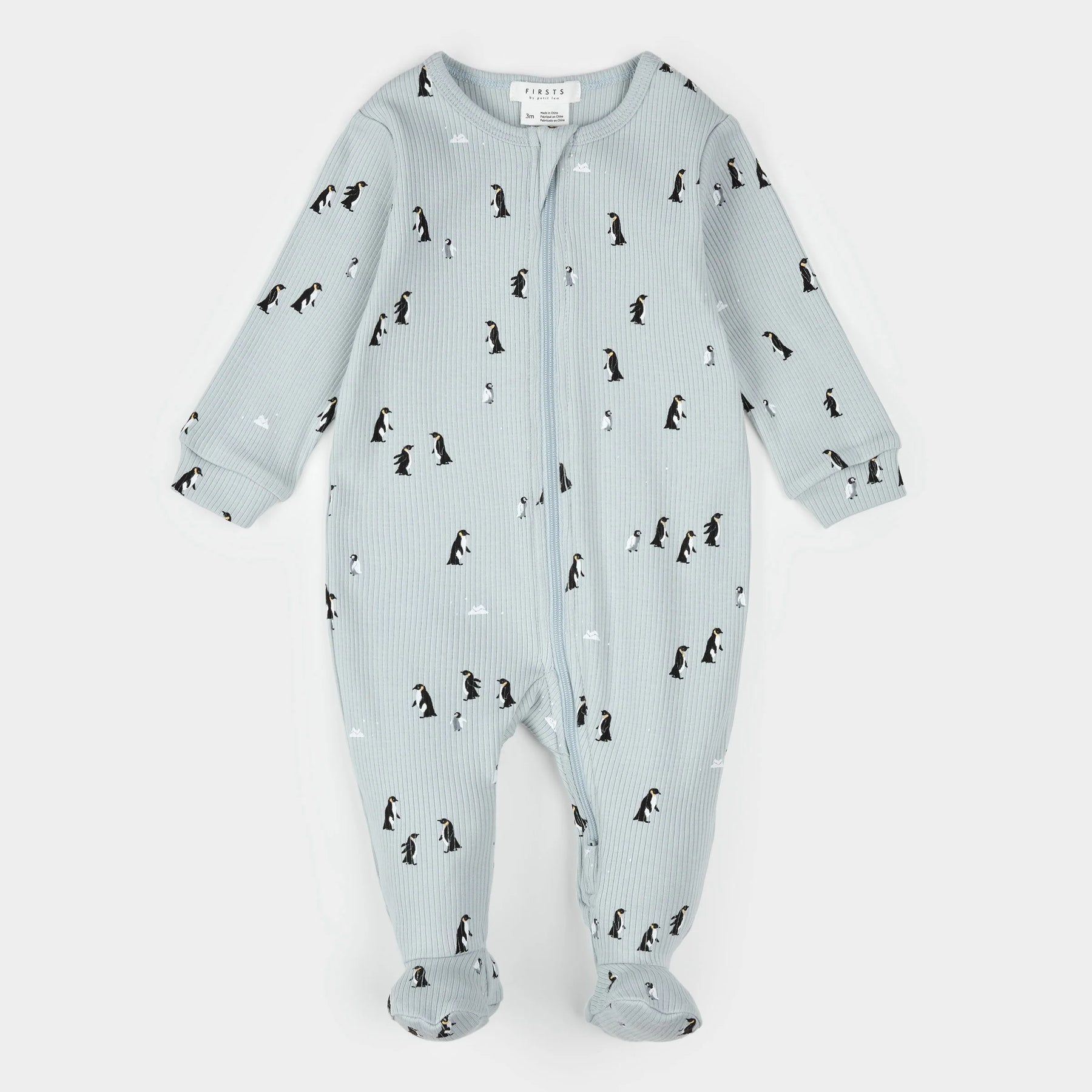 This snug and cozy footed sleeper is perfect for keeping your littlest chick toasty on cold nights. The soft ribbed piece features our adorable Penguin print which matches the PJs available in the same range so siblings can huddle together in perfect coordination. Designed with integrated feet, ribbed cuffs, and a two-way zip, it keeps little ones comfortable while making dressing and changing easy for mom and dad.