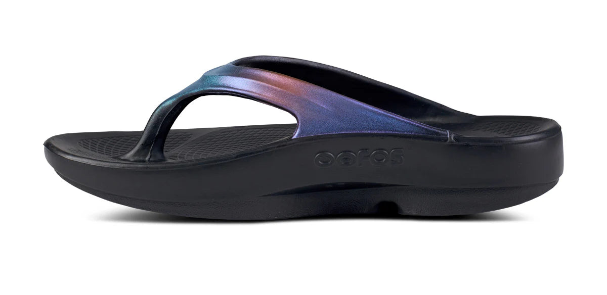 Featuring a uniquely streamlined OOFoam ™ footbed, our OOlala Sandal was built with style and unparalleled recovery in mind. Colors and shine bring some extra fun and expression to OOFOS' classically sleek footbed.