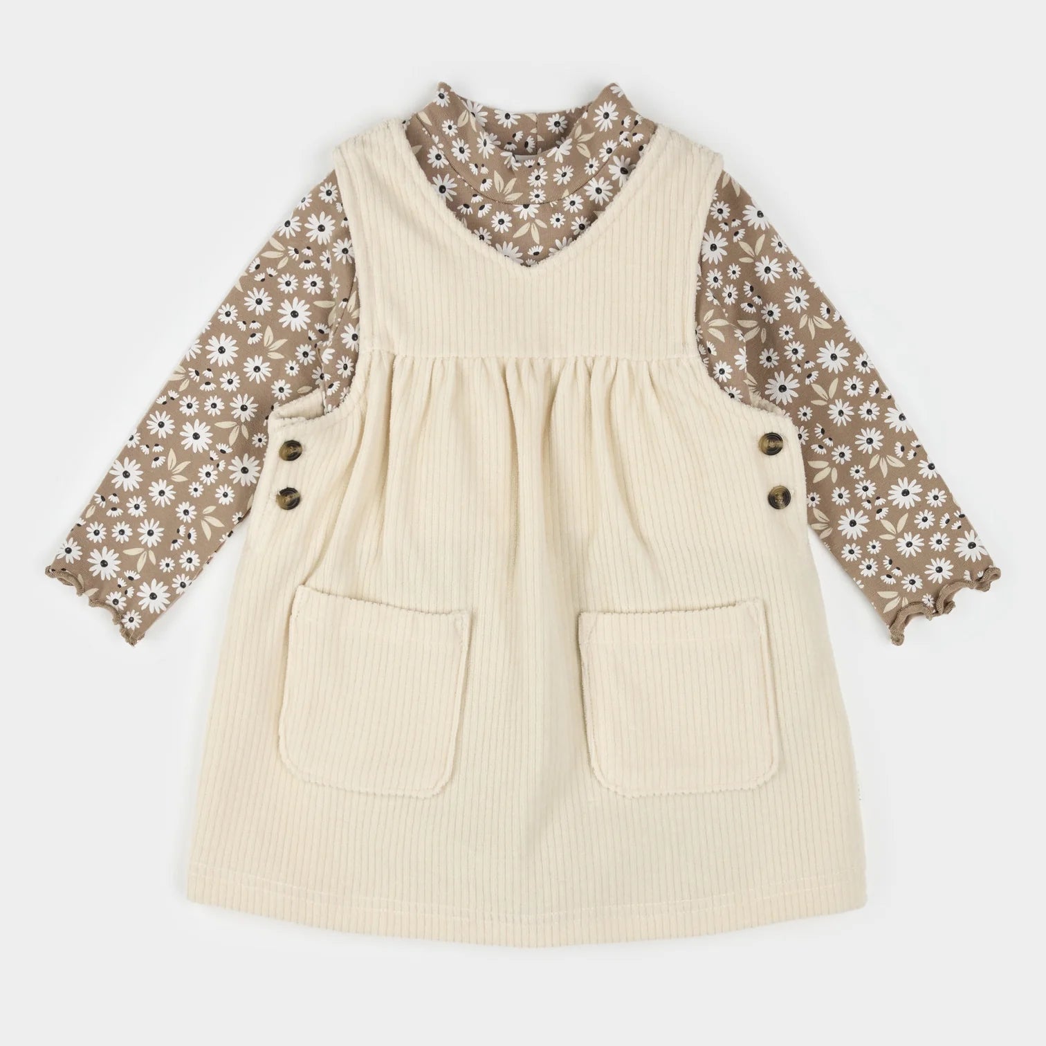 This adorable two-piece set combines comfort and style with a high neckline and thicker corduroy layers for the perfect Fall ‘fit. With a dainty Daisy print and coordinating overalls, the vintage-inspired set is perfect for playdates or dinner dates with the fam.