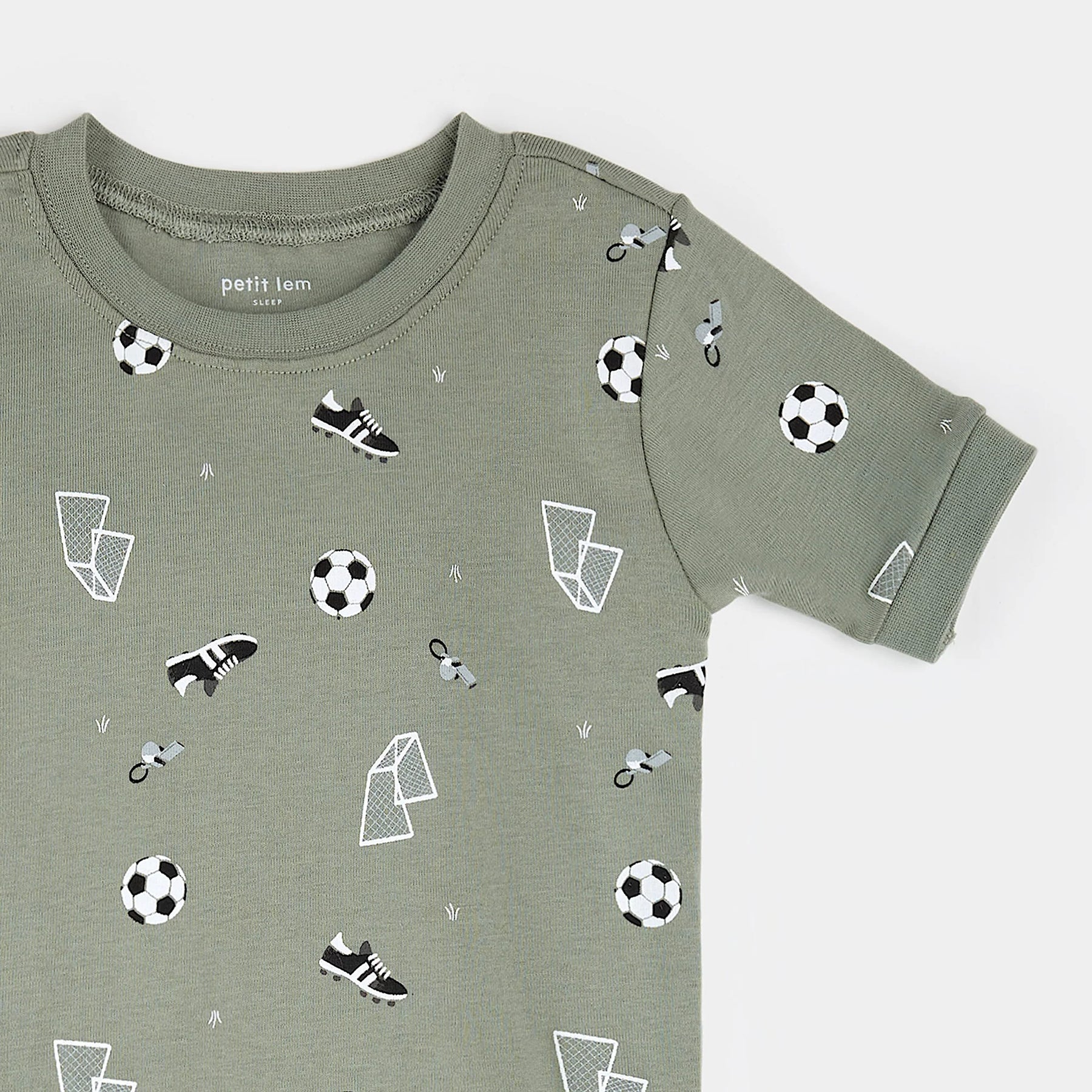 PETIT LEM- Kids Soccer Print on Olive Short-Sleeved PJ Set