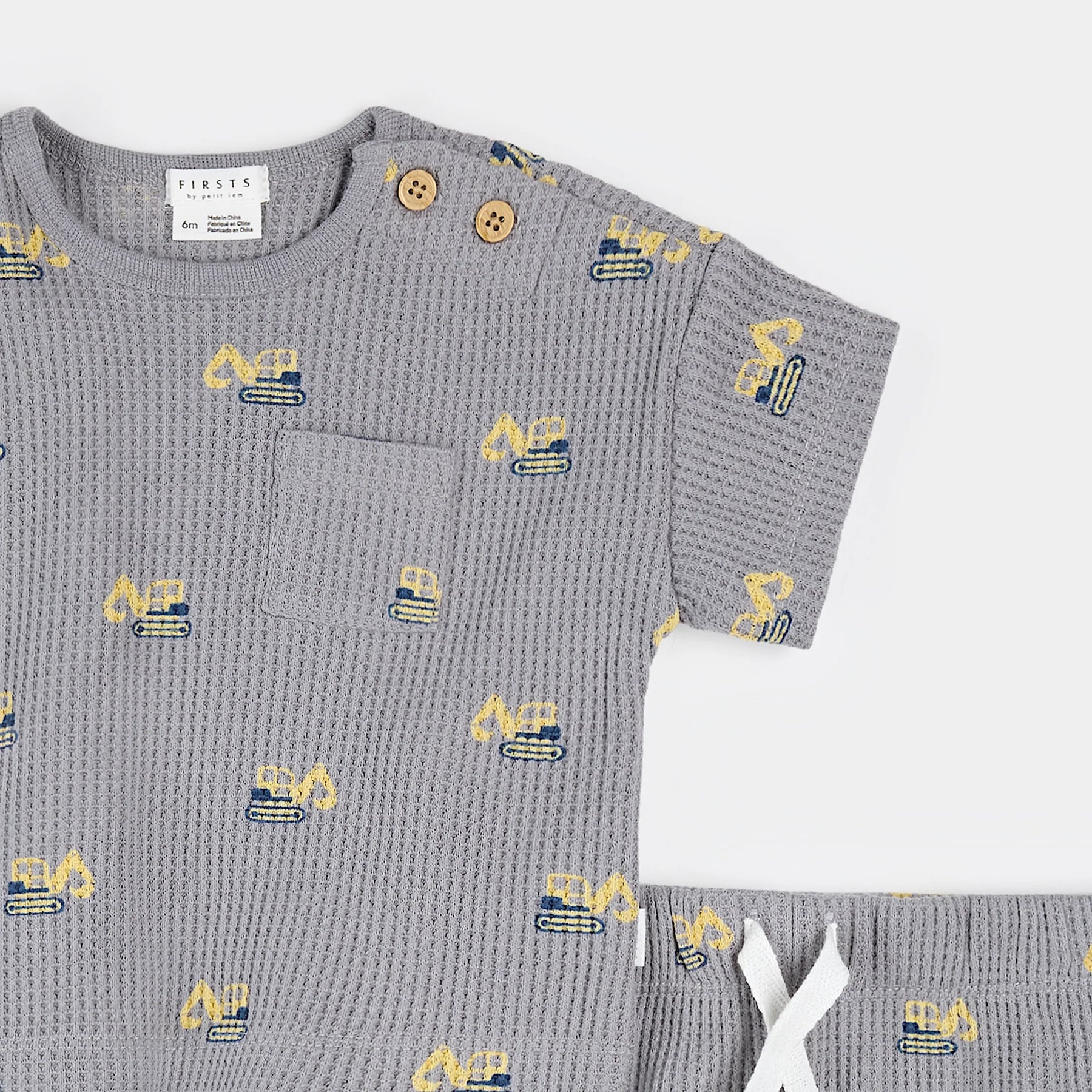 This two-piece set includes a comfy short-sleeved tee and coordinating shorts with a stretchy waistband for easy dressing. Printed with our all-over diggers design, it’s an essential for little busybodies who love to build, dig and discover. Perfect for park days or scooping and exploring in the sandpit.