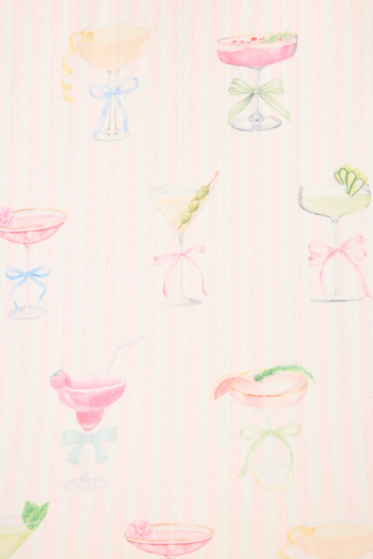 A toast to bedtime, this long-sleeve PJ top features an allover cocktail print on a baby-pink and white striped base, crafted from double-brushed pointelle for a supremely soft feel. Delicate scalloped trim at the neckline and cuffs adds a sweet touch to this cozy crewneck silhouette.