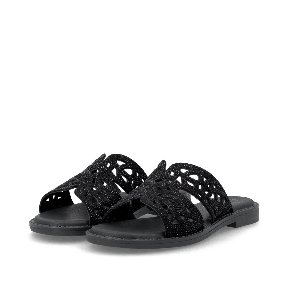 Elevate your everyday look with the Remonte Amaryllis Sandal. This sophisticated mule features a sleek design enhanced with subtle sparkle details that catch the light beautifully. Perfect for transitioning from casual outings to more polished occasions, the Amaryllis delivers comfort without compromising on style. The refined silhouette and shimmering accents make it an effortless addition to any wardrobe, offering that elevated touch you're looking for in a versatile sandal.