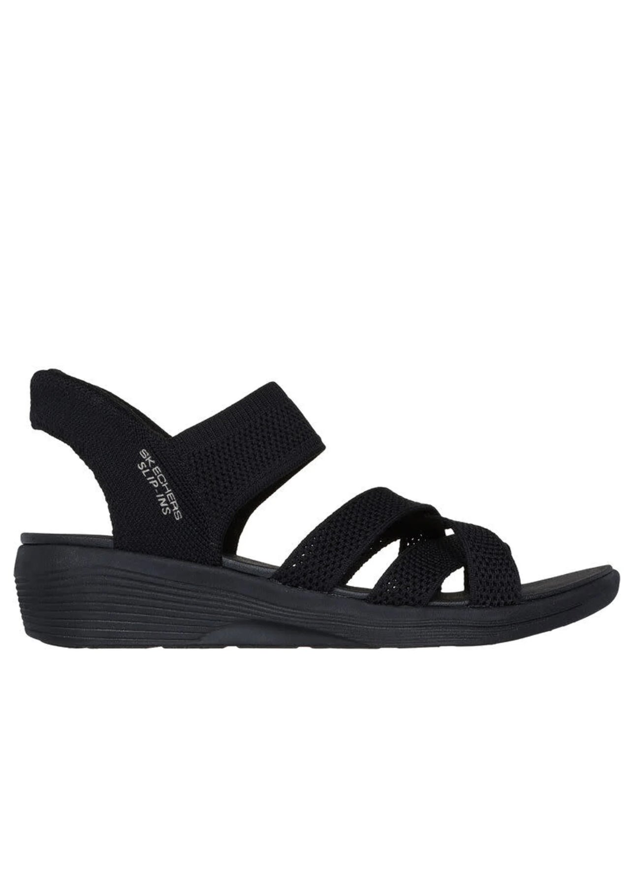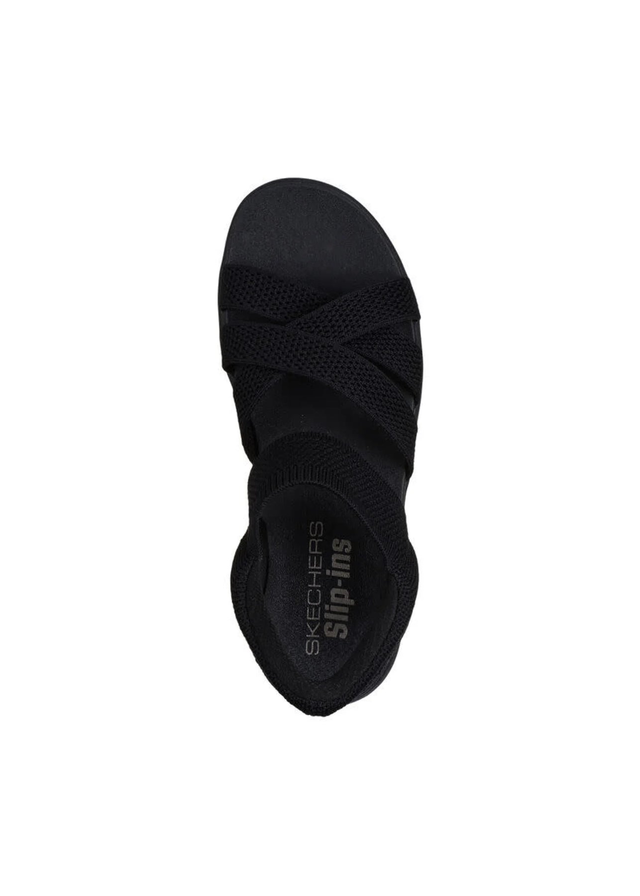Enjoy sunny days in breezy comfort with Skechers Hands Free Slip-ins®: Arya - Sparkling Praise. Designed with our Skechers Hands Free Slip-ins® back heel, this slip-on sandal features a strappy sequin knit upper with a cushioned Luxe Foam® footbed.