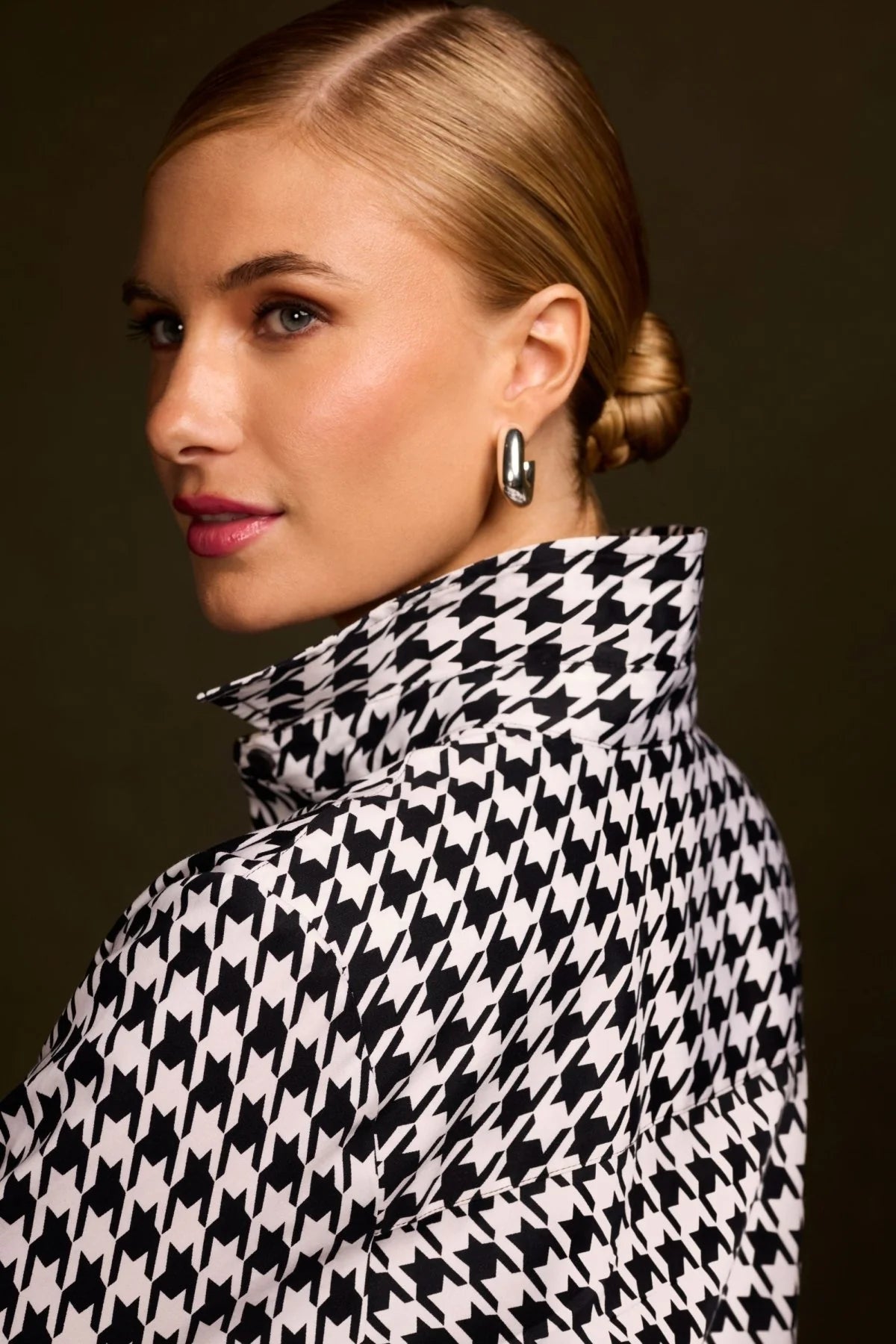 A timeless pattern meets an all-time favorite fit. Meghan’s classic, tailored silhouette flatters effortlessly — polished enough for a night out, easy enough for every day. The crisp cotton fabric brings a structured yet soft feel, while traditional hounds tooth adds just the right amount of visual interest. Layer it under a blazer or wear it solo to keep your look sharp and your style simple.