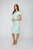 Introducing the Frank Lyman knee-length bodycon dress, perfect for casual and semi-formal occasions. This abstract-patterned dress features a round-neck design with jewel embellishments, adding a touch of elegance. The short, straight sleeves enhance its feminine style, making it a versatile addition to your wardrobe. Enjoy the perfect blend of comfort and sophistication with this must-have piece.