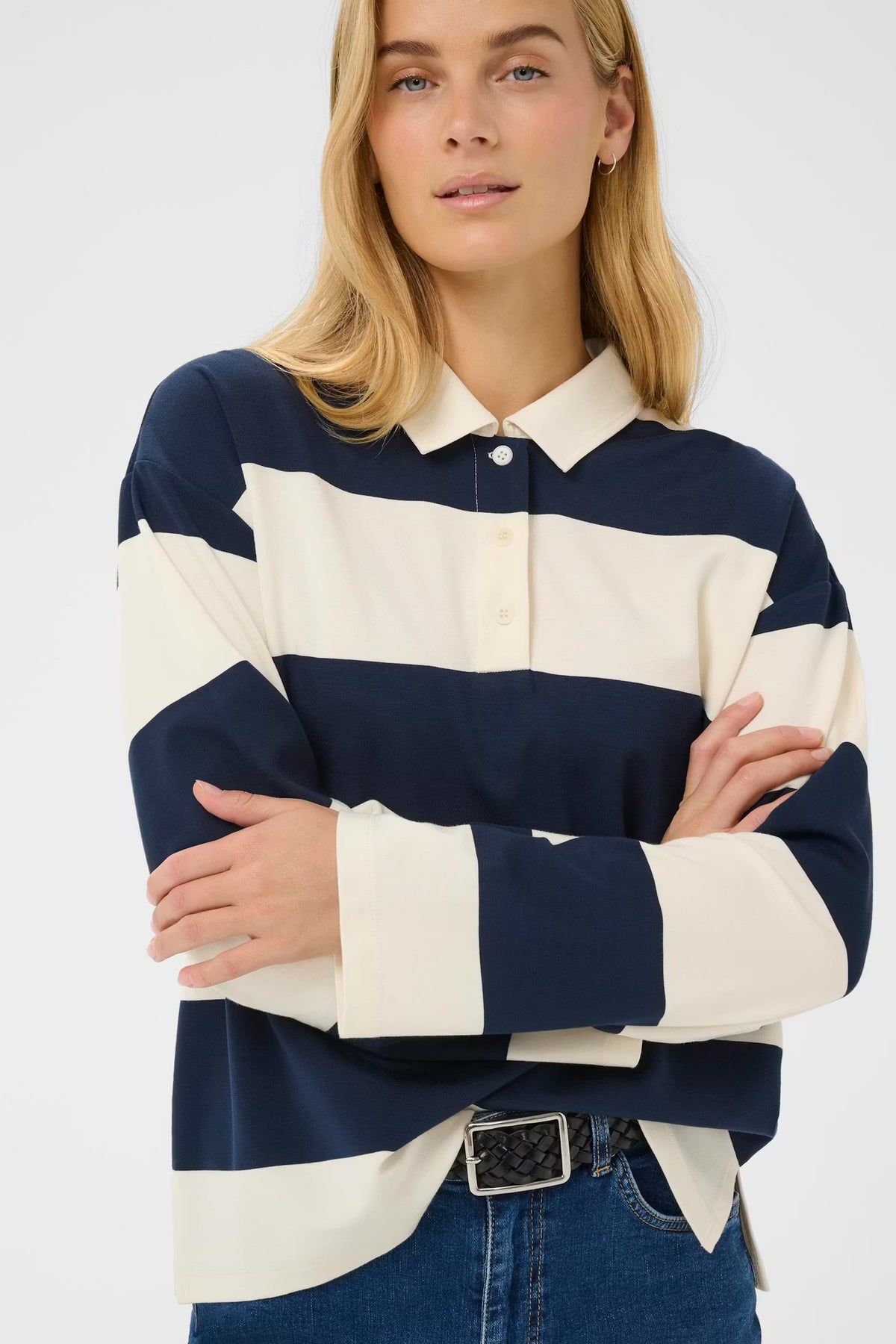 The PART TWO Amari Shirt brings timeless style to your everyday rotation. Bold wide stripes and a classic polo collar create instant visual impact, while long sleeves and a relaxed, straight silhouette offer all-day comfort. The smooth finish feels soft against your skin, and the button placket adds functional detail. Perfect for layering or wearing solo, this versatile piece transitions effortlessly from casual weekends to smart-casual occasions.