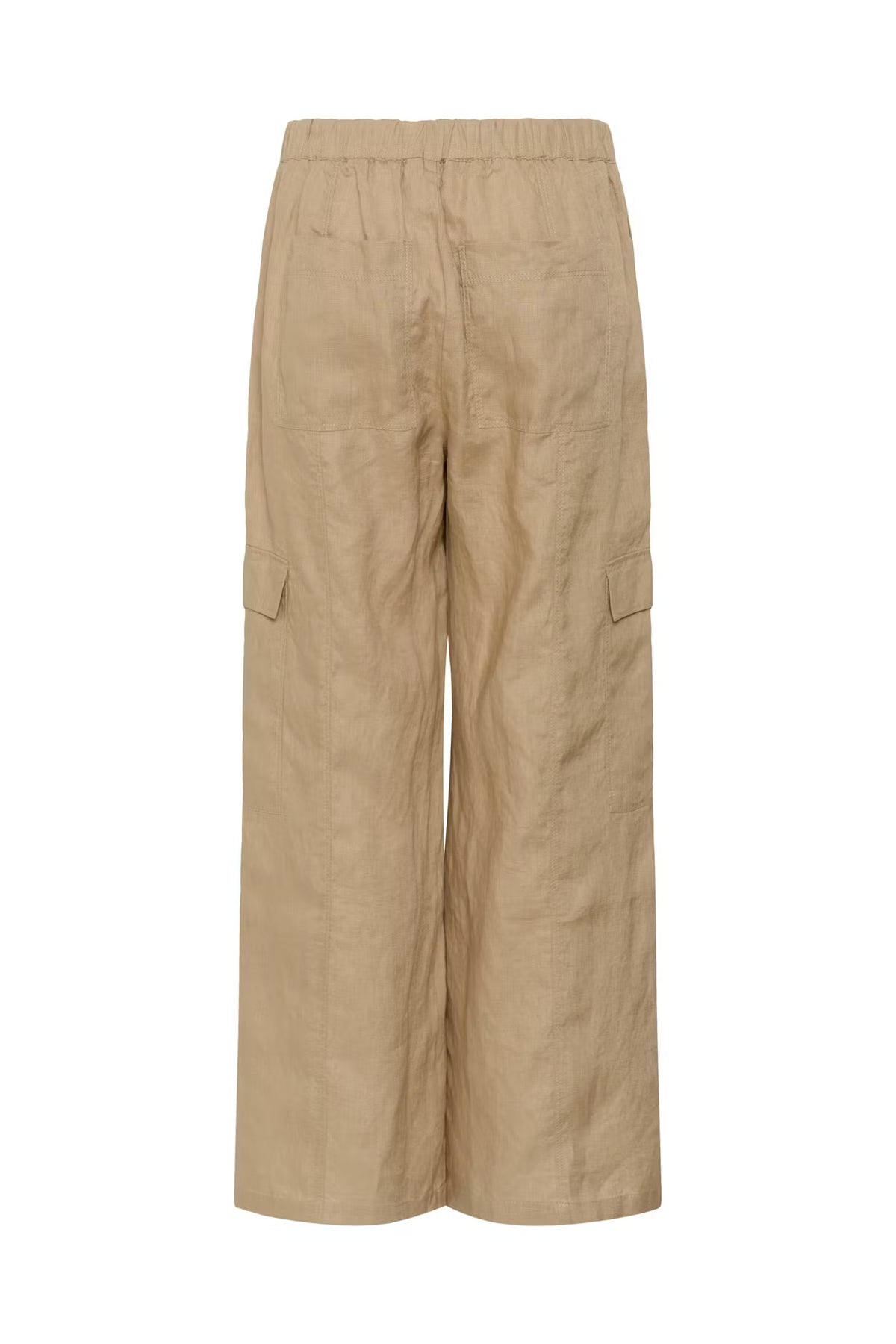 The model is 172 cm tall and wears a size 36. These relaxed trousers are designed with an elastic waistband and adjustable drawstring for all-day comfort. The straight legs and practical cargo pockets add a casual touch, while the lightweight fabric keeps the look soft and easy. Style them with a shirt or knit for everyday wear.