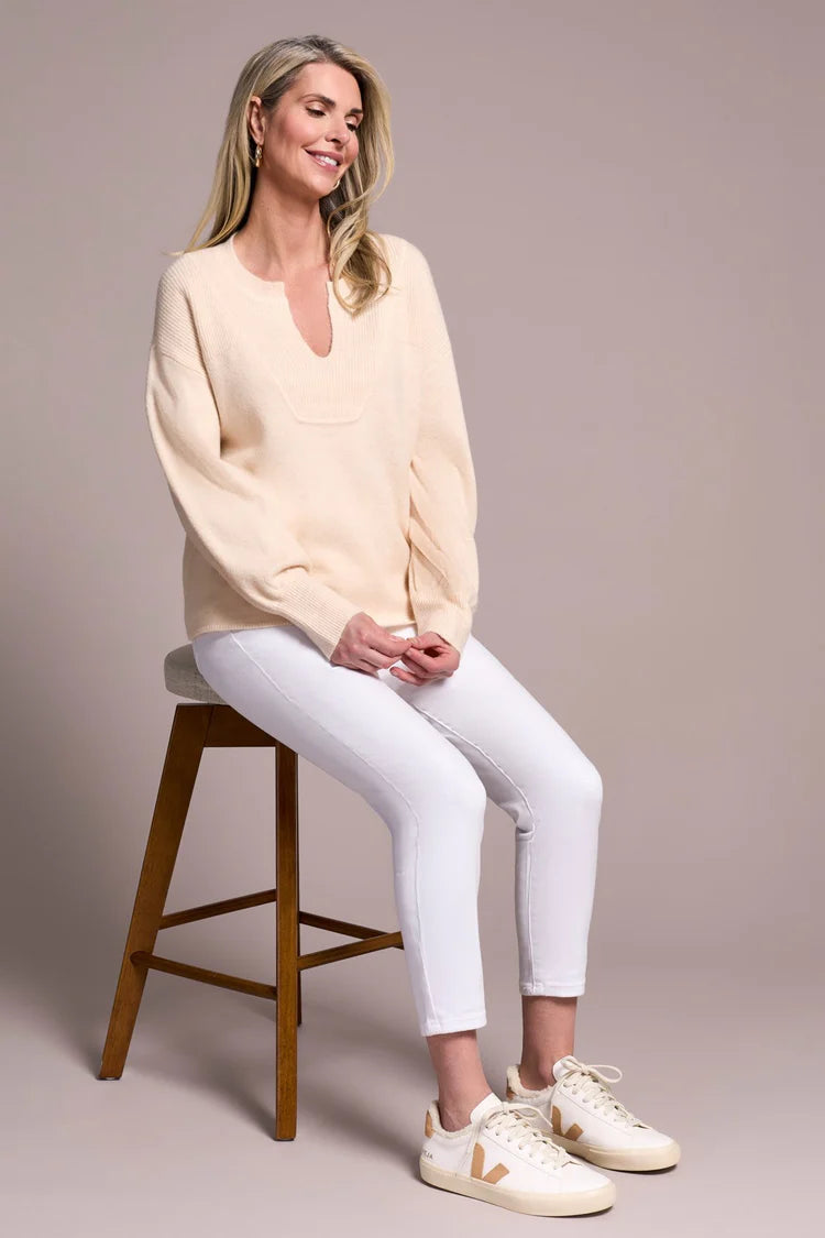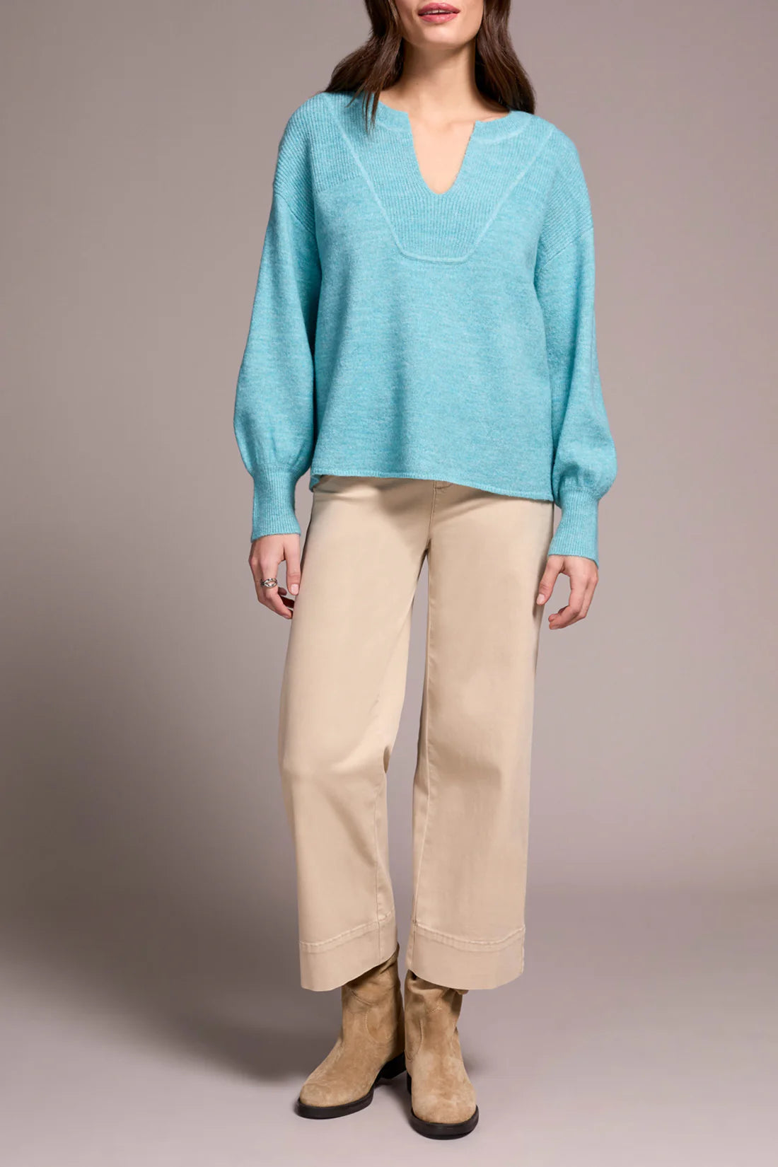 Stay effortlessly cozy in this relaxed sweater, crafted from soft blend yarn for a touch of luxurious warmth.