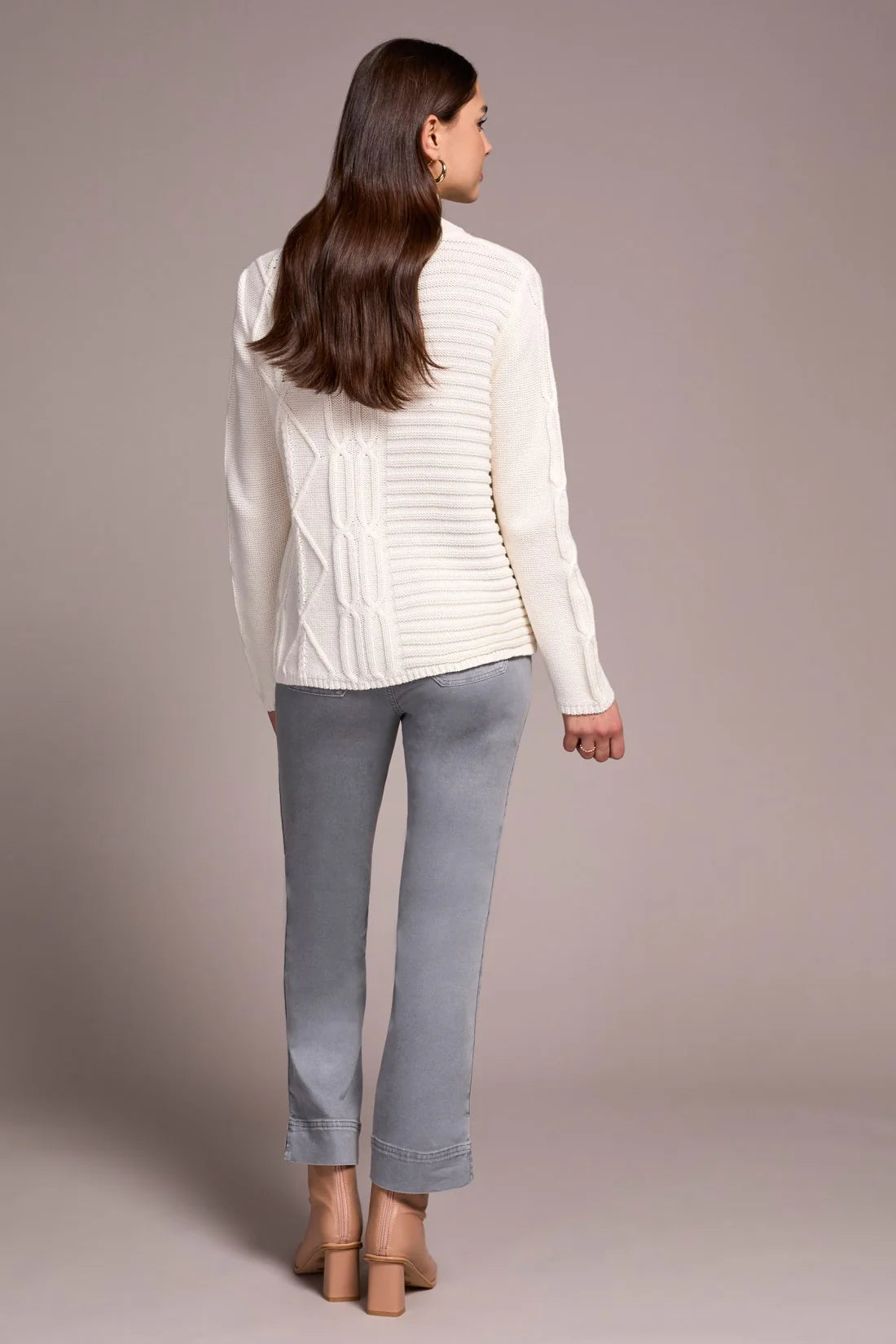 Indulge in cozy comfort with this warm sweater featuring a mock neckline and long sleeves for full coverage.