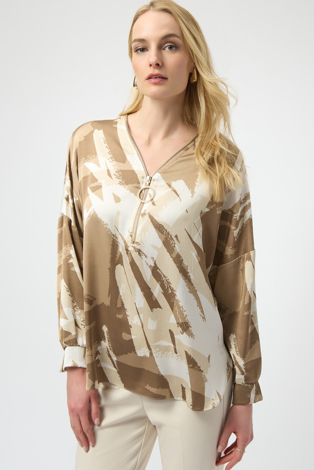 JOSEPH RIBKOFF- WOMEN'S V NECK ZIPPER TOP