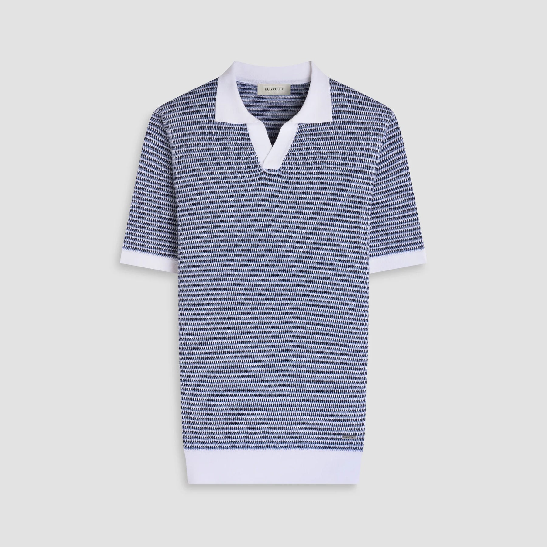 Knit from a soft cotton-modal blend, this short-sleeve sweater features a refined Johnny collar and a subtle micro jacquard texture that adds depth and visual interest. Finished with contrasting ribbed trims for a polished look, it's an effortless piece that transitions seamlessly from casual occasions to more elevated settings.