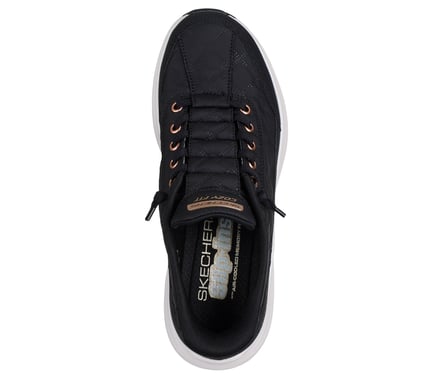 PUFFER FIT™ Step into plush luxury and cozy comfort with Skechers Hands Free Slip-ins®: Contour Foam™ - Cozy Fit™ Golden Hour. Designed with our Heel Pillow®, this slip-on style features a quilted Cozy Fit™ and duraleather overlay upper with tied-off stretch laces, Contour Foam™ midsole cushioning, and our signature cushioned Skechers Air-Cooled Memory Foam® insole.