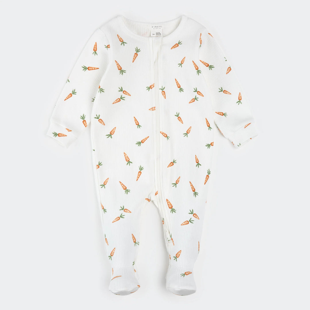 PETIT LEM - Baby Carrots Print on Off-White Ribbed Sleeper