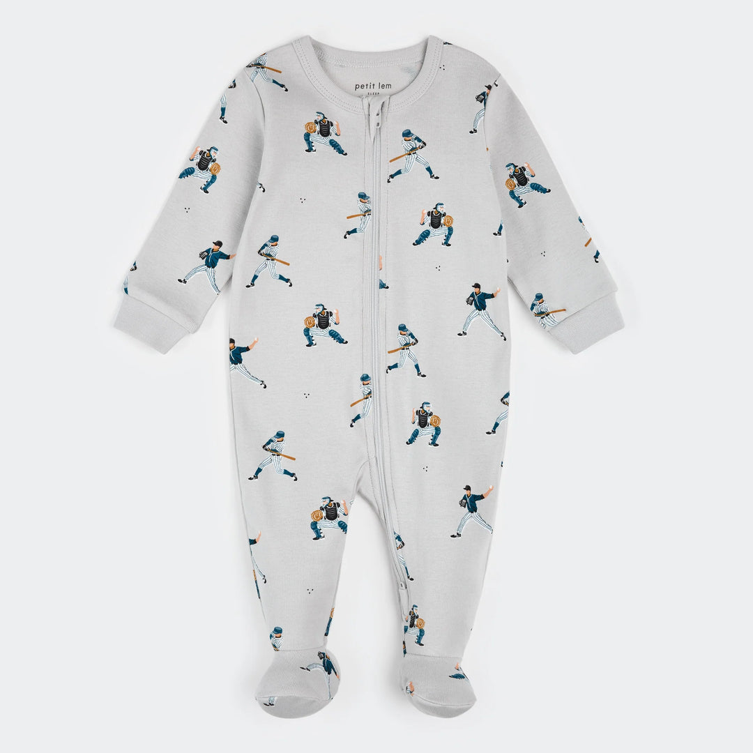 PETIT LEM- Baby Baseball Player Print on Lunar Rock Sleeper