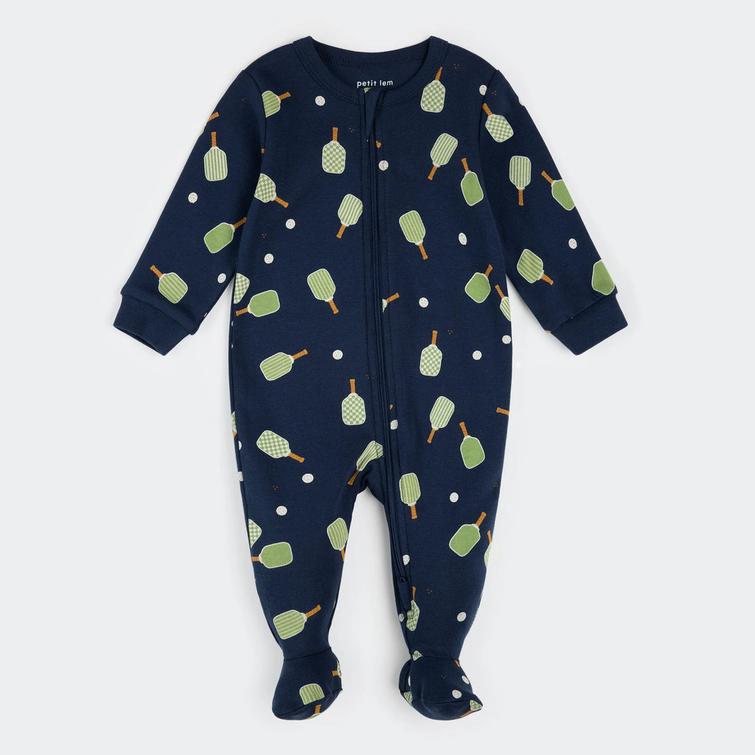 PETIT LEM- Baby Pickleball Print on Dress Blue Sleeper