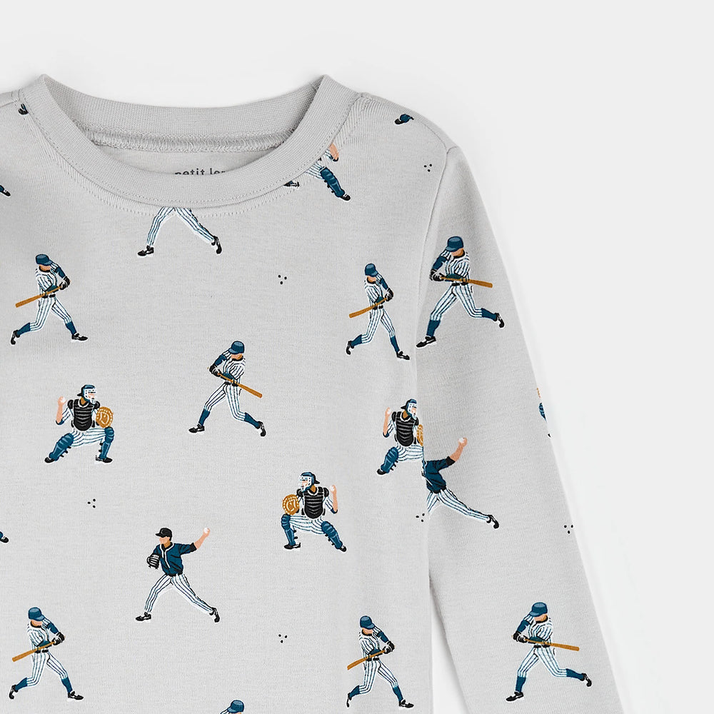 PETIT LEM- Kids Baseball Player Print on Lunar Rock PJ Set