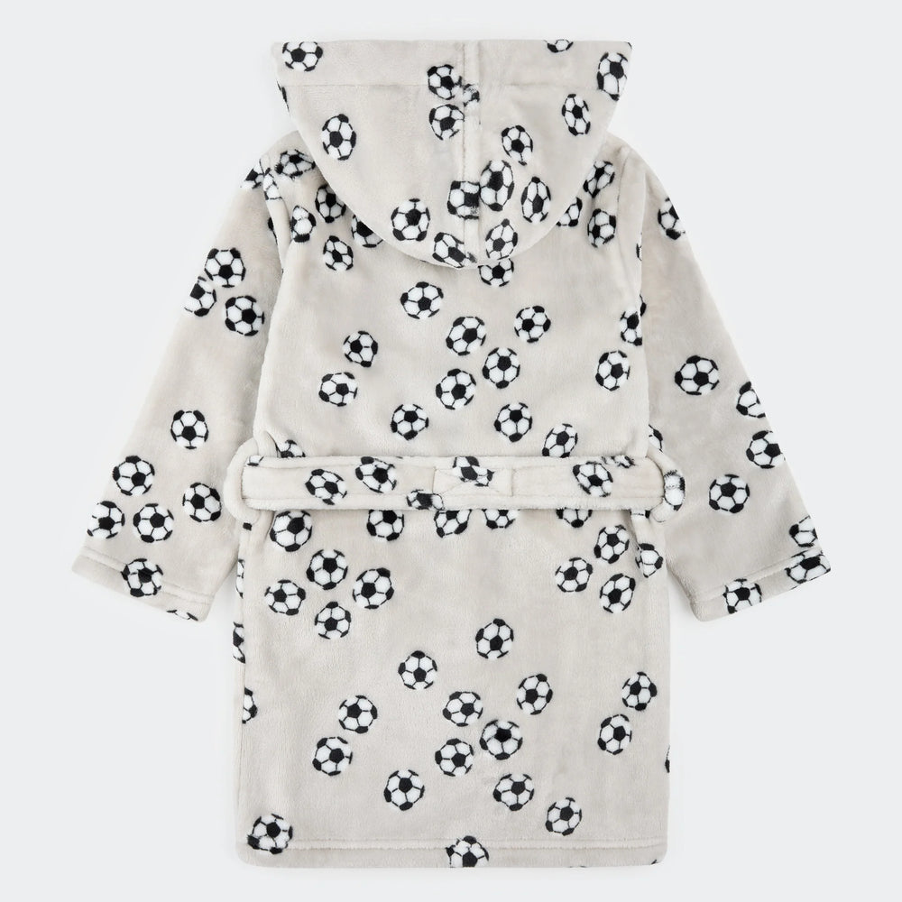 PETIT LEM- Kids Soccer Ball Print on Lunar Rock Plush Robe