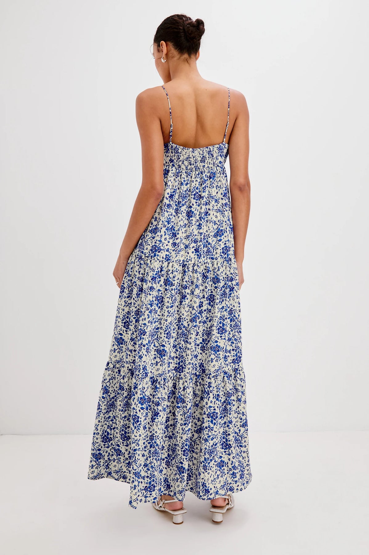 Made from 100% crinkled cotton poplin, the Mica is an easy-wearing maxi dress with a fitted bodice and full, flowy skirt. Features full lining and adjustable straps.