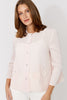 Step into effortless elegance with this Frank Lyman cardigan. Featuring a button closure and a collared neckline, this hip-length piece combines casual and semi-formal styles effortlessly. The 3/4 straight sleeves adorned with buttons and jewels add a touch of feminine charm. Its regular fit and plain pattern make it a versatile addition to any wardrobe, perfect for everyday wear.