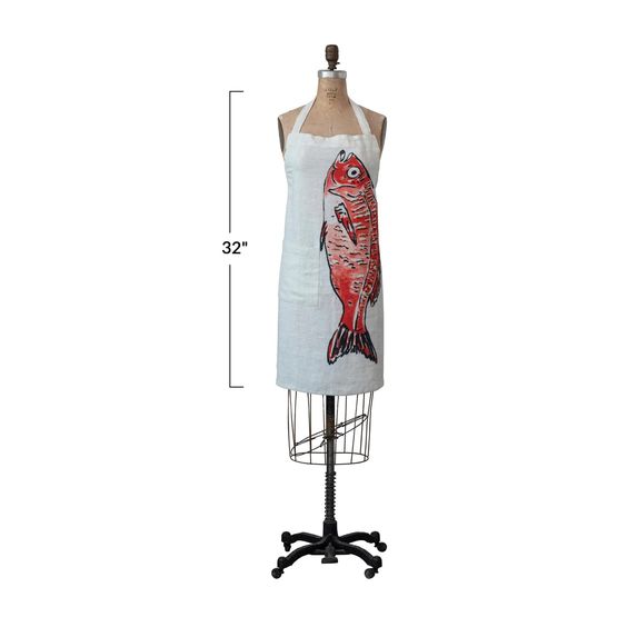 Take your kitchen aesthetic to the next level with our Creative Co Op Linen Fish Printed Apron! Made with 32 inches of durable linen, this apron features a convenient pocket and a bold fish print in multiple colors. Perfect for any cook or baker looking to add some fun to their culinary experience.