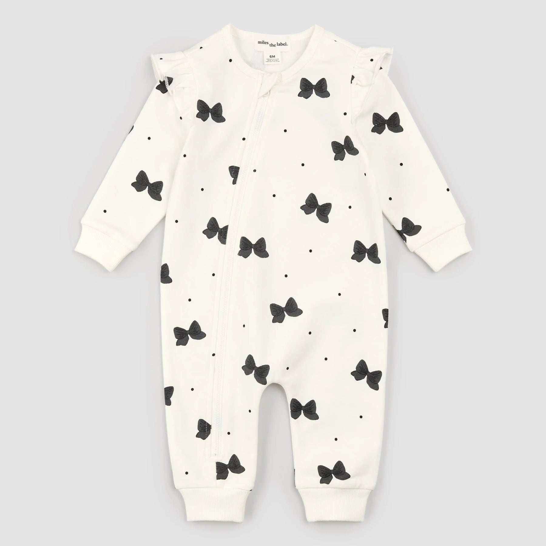 This cozy fleece playsuit is designed for all-day comfort while allowing her to feel a little fancy. Featuring a sparkly, glitter bow print, it’s perfect for special occasions while leaving her free to play and move.  The ribbed cuffs and ankles, and full-length zip make for fuss-free changing both during and after an eventful day.
