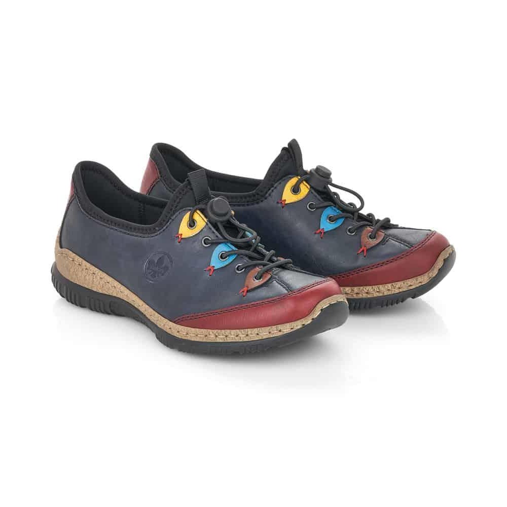 "Maximum comfort at every turn! These blue Rieker shoes impress with their modern design and high comfort. This shoe was made using the traditional stitchdown technique, which gives it a high degree of robustness and flexibility. In addition, the shoe fits like a glove thanks to the elastic band. The fashionable eyelet decoration adds a fresh accent. The shock-absorbing and light sole ensures a pleasant wearing sensation. Another plus is the extra soft MemoSoft cover sole. So let's get going!"