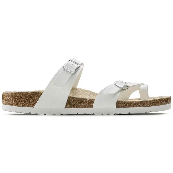 "Supremely comfortable with sophisticated, crisscross straps, the Mayari redefines the thong sandal with a single toe loop. The style comes in smooth Birkibuc® for a brushed, nubuck-like finish. Complete with classic BIRKENSTOCK design elements, like adjustable buckle closures and a contoured footbed for the ultimate in support."