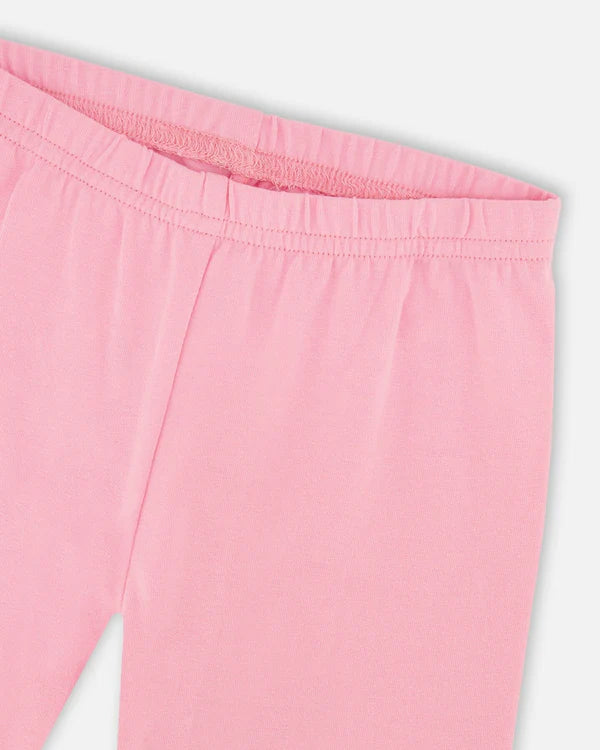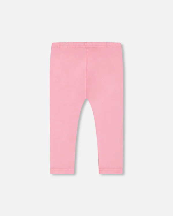 "Our organic cotton candy pink leggings are a must-have in every little girl's wardrobe! Super soft and stretchy in lightweight cotton, these leggings slip on easily with an elastic waistband, have a cropped length and a small logo label at the hem. Pair them with any top from our "À tire d'aile" collection!"