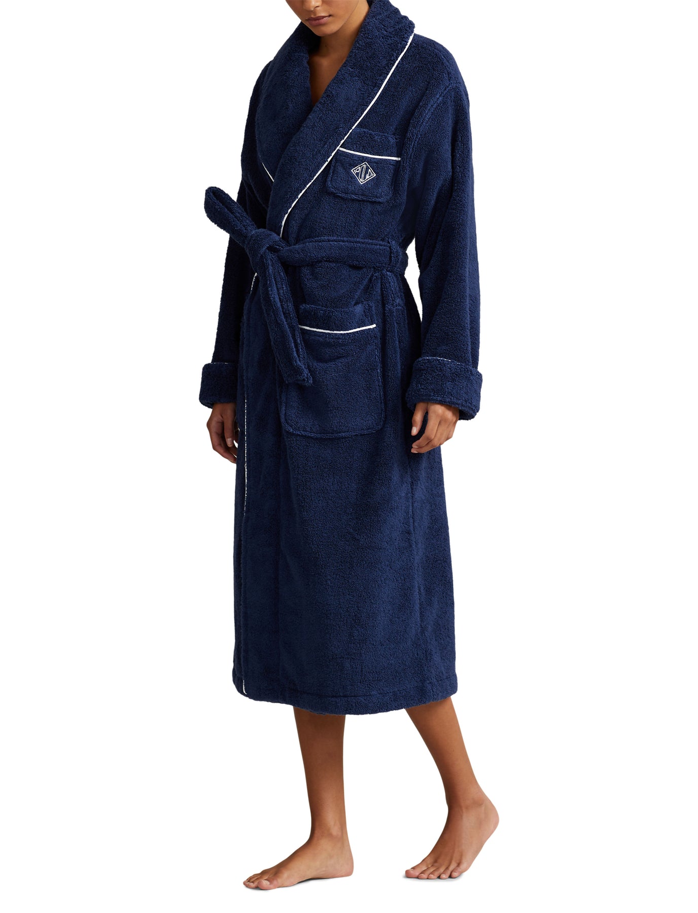 Indulge in ultimate luxury with the POLO RALPH LAUREN BATHROBE- 4P0005- NAVY/WHITE CLOUD. Made from high-quality materials, this bathrobe offers comfort and style. Wrap yourself in softness and elevate your relaxation experience. Perfect for everyday use or cozy nights in. Experience the best in comfort and fashion with POLO RALPH LAUREN.