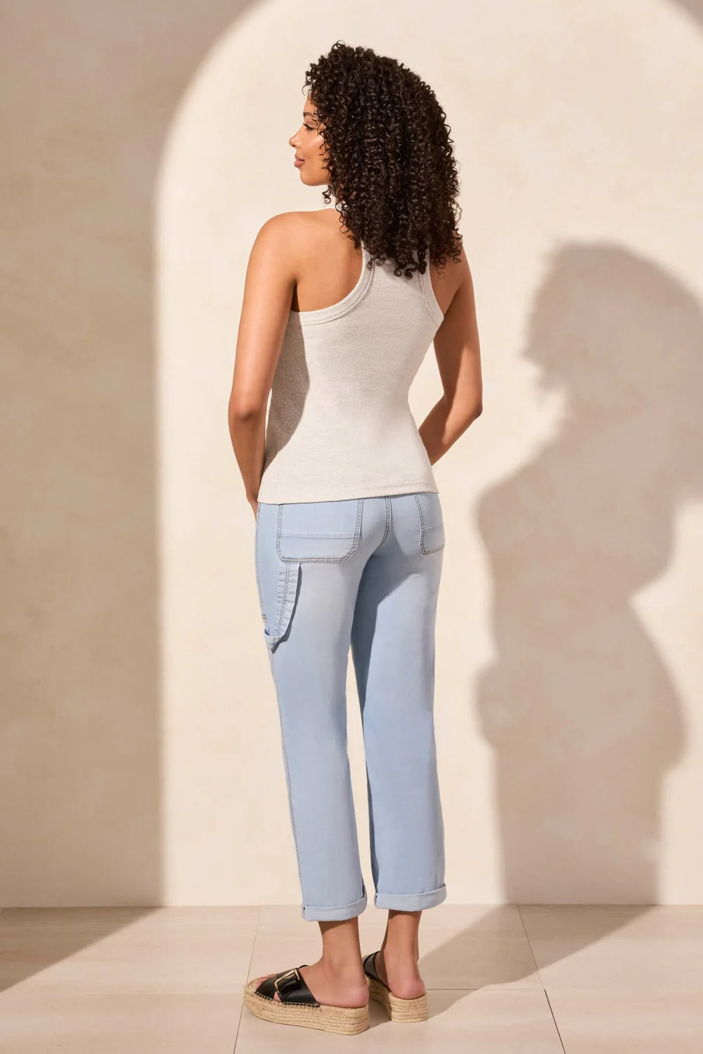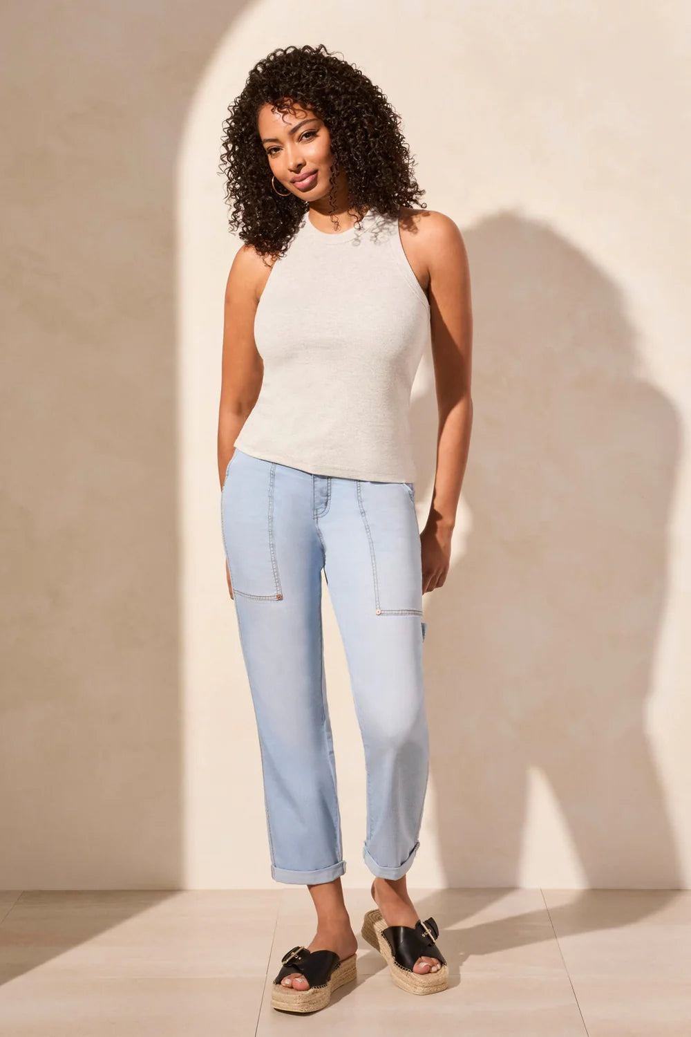 Opt for comfort with this classic racerback tank, crafted from stretchy baby rib knit. Its fitted cut ensures a flattering silhouette on its own and makes it easy to layer beneath a button-up shirt or sweater.